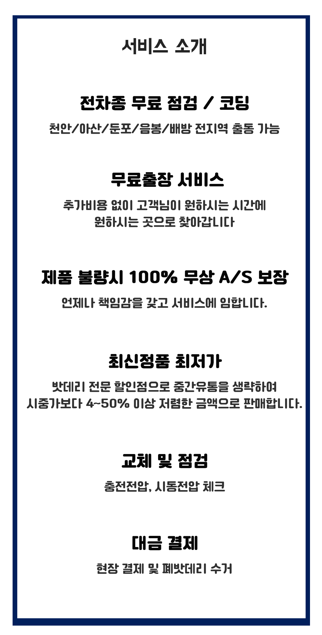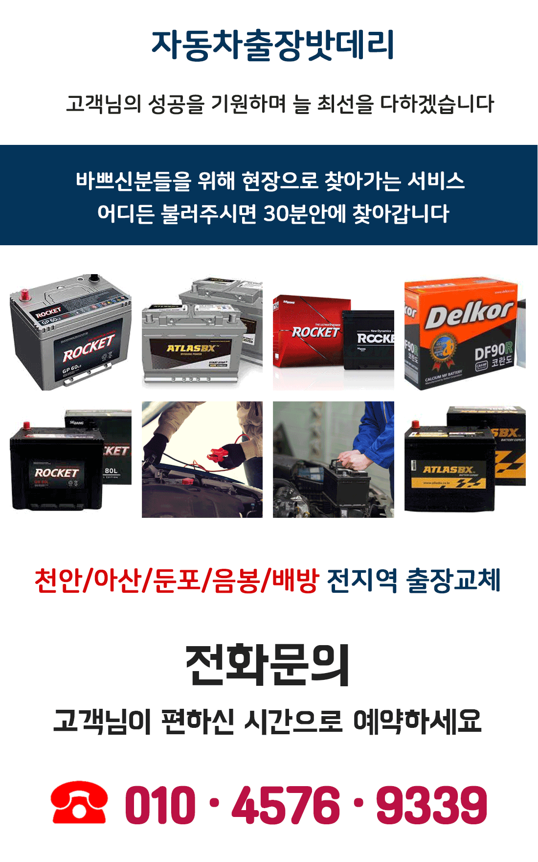 Our services 무료 출장서비스 천안/아산/둔포/음봉/배방 전지역자동차밧데리 무료 출장 교체 car battery 출장밧데리 고객센터 모바일에서 전화번호 클릭시출장밧데리 고객센터로 연결되며카카오톡 상담은모바일 PC 모두 상담 가능합니다